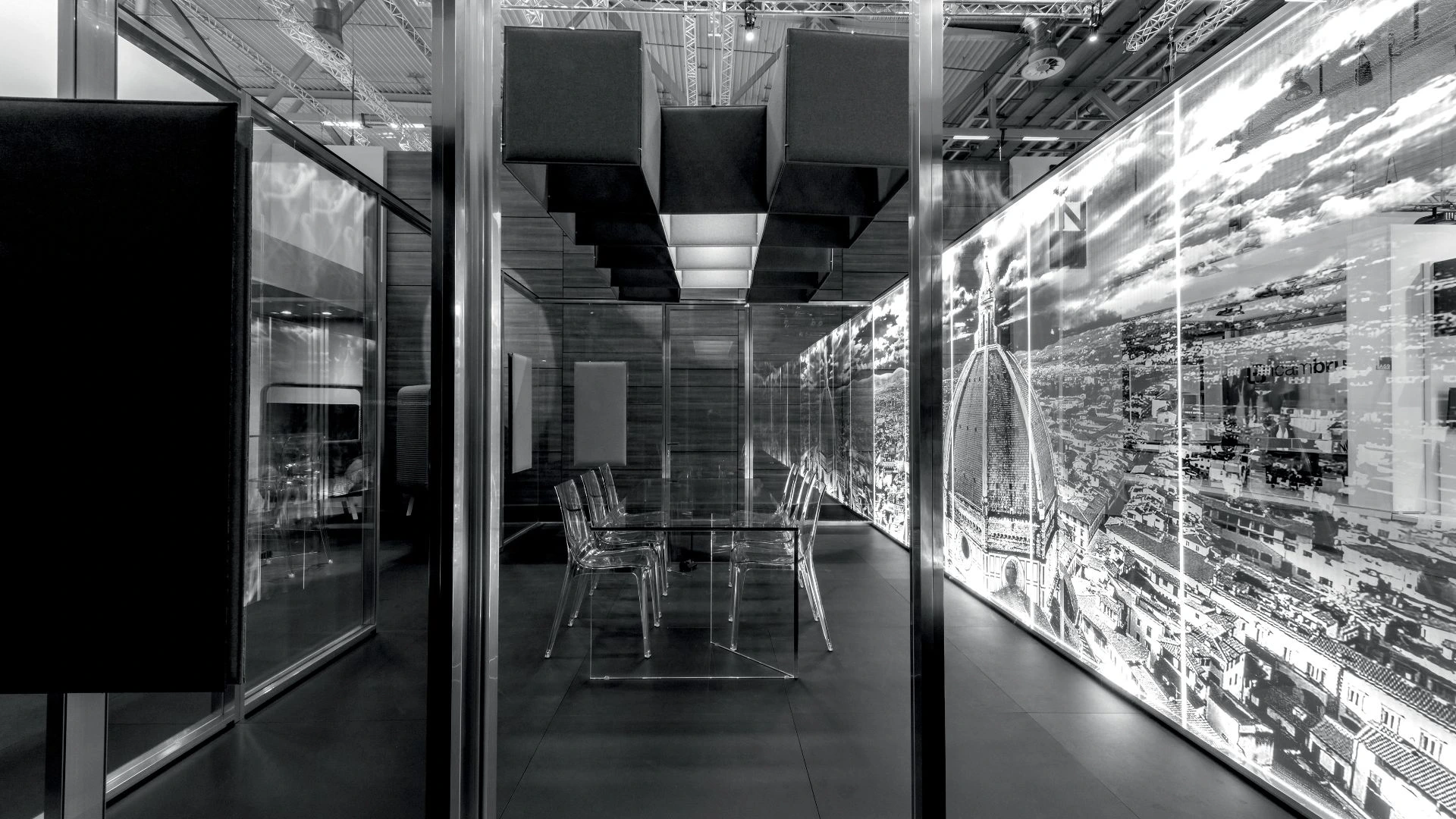 Njegovo vsestranskost znotraj steklenih sten je mogoče izkoristiti v pisarnah in poslovnih prostorih, saj omogoča, da predelne stene ustvarijo sugestivne poglede z močnim vizualnim učinkom.