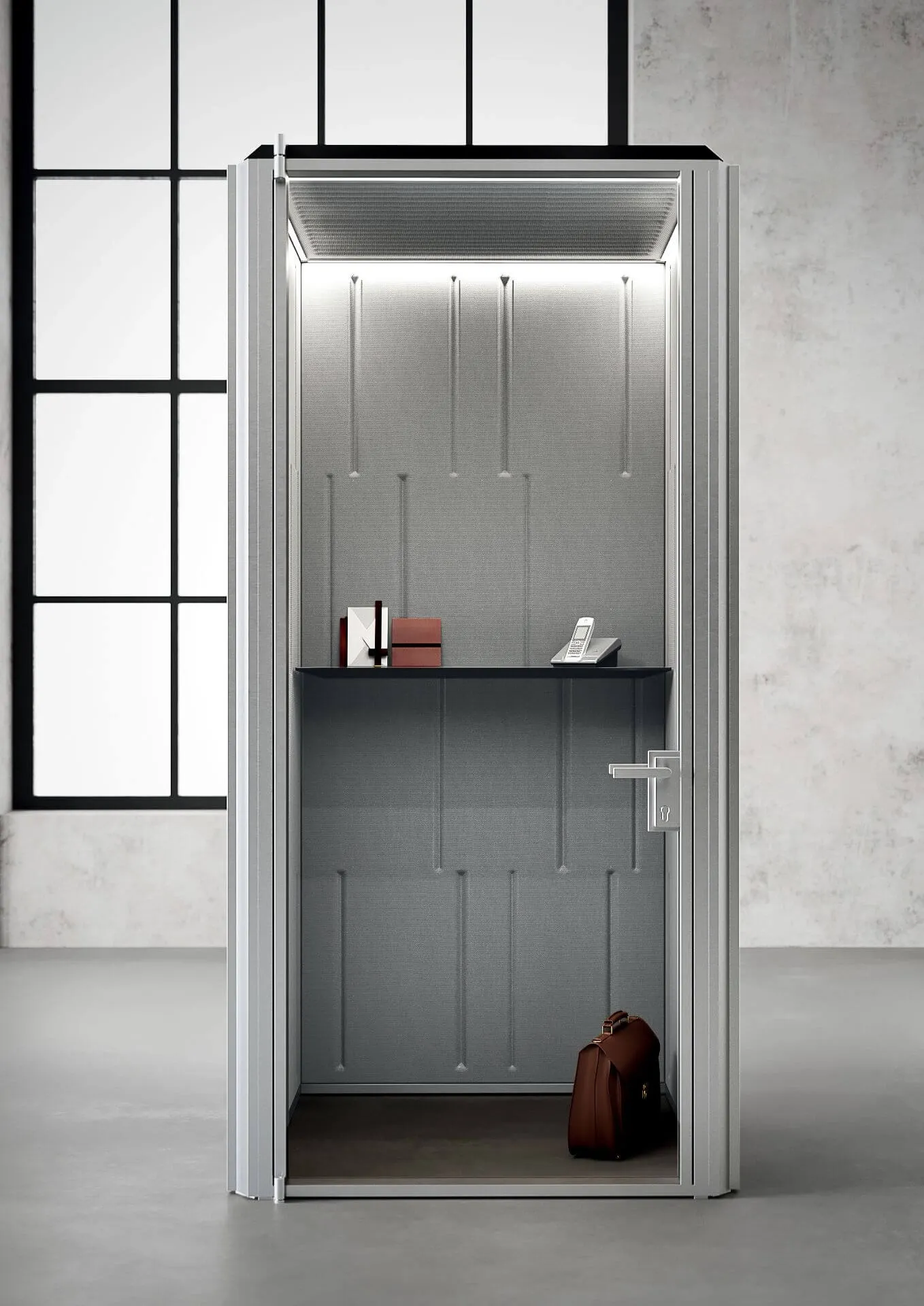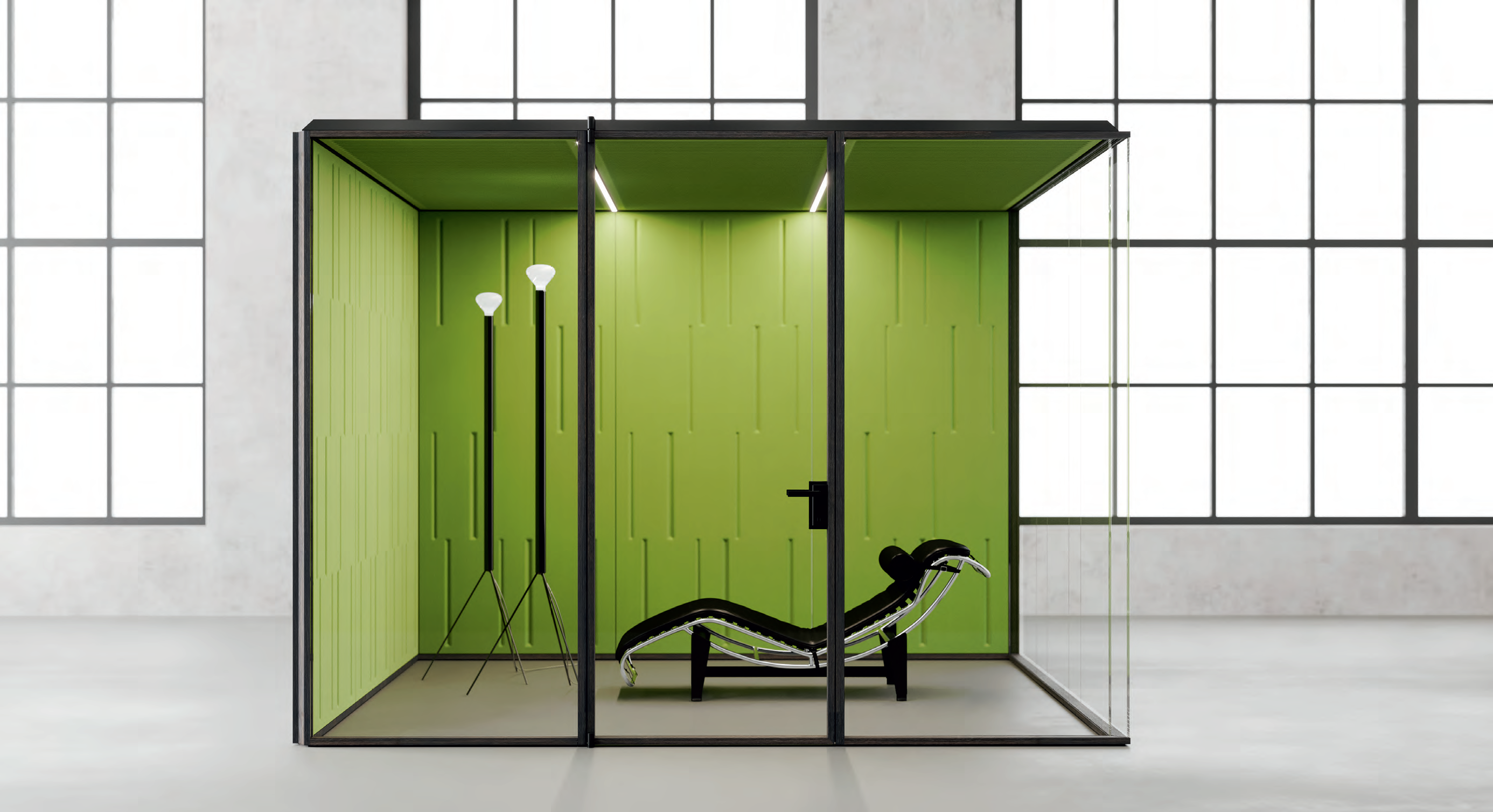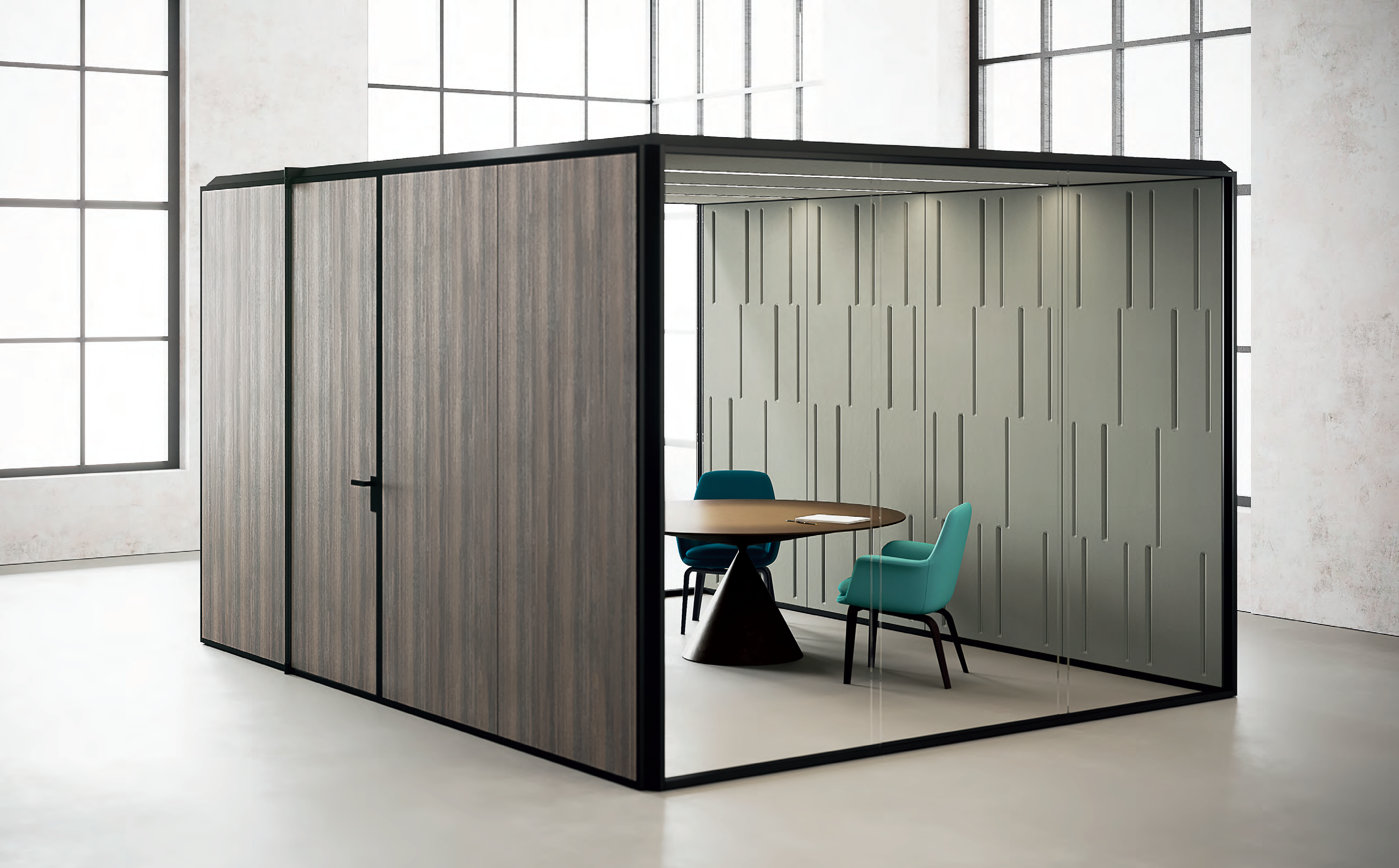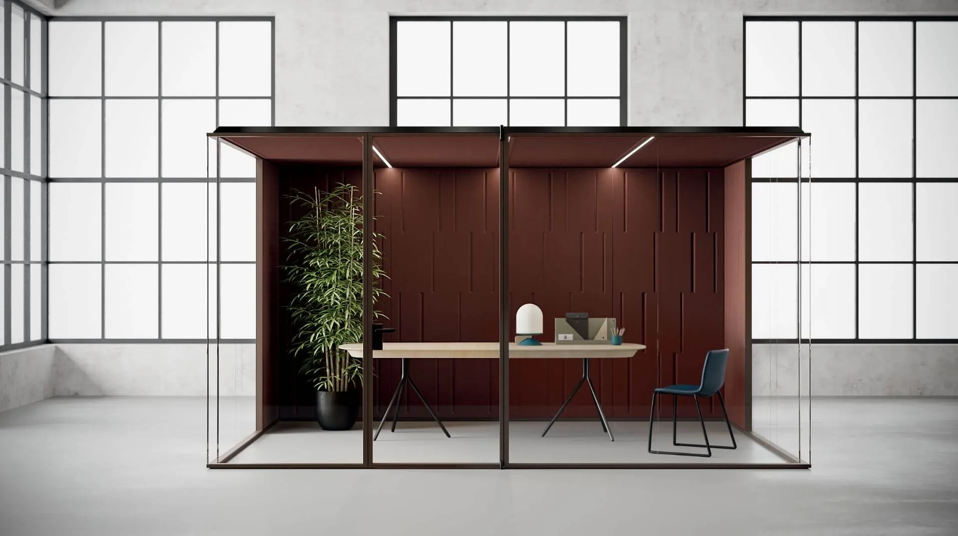 Enostavna in hitra namestitev modularnih predelnih sten enote omogoča enostavno prestavljanje, preoblikovanje in integracijo. BOX ponuja možnost združevanja več enot, ki so med seboj notranje povezane, hkrati pa ohranja visoko stopnjo akustične izolacije od zunaj. Tako postane sistem modularnih otokov z zvočno izoliranimi kabinami, ki ustvarjajo otoke zasebnosti v prostoru.