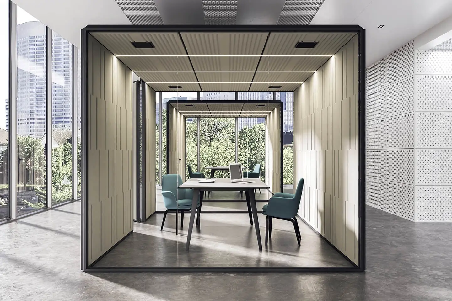 Samostojne akustične enote postajajo vse bolj priljubljena rešitev za izboljšanje akustike in ustvarjanje udobnega delovnega okolja v odprtih pisarniških prostorih. Akustične enote so izdelane iz materialov, ki absorbirajo zvok. Načrtovane so na način, da v prostoru zmanjšujejo raven hrupa in ustvarijo bolj zasebno delovno okolje.