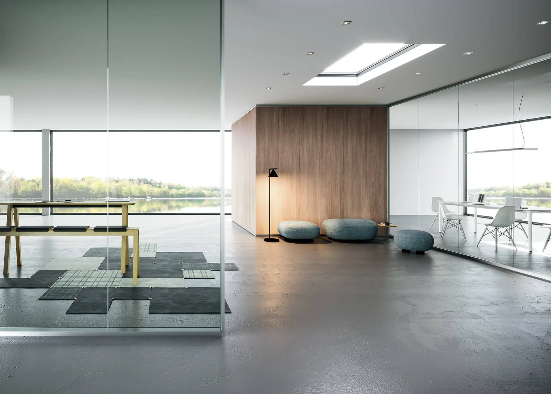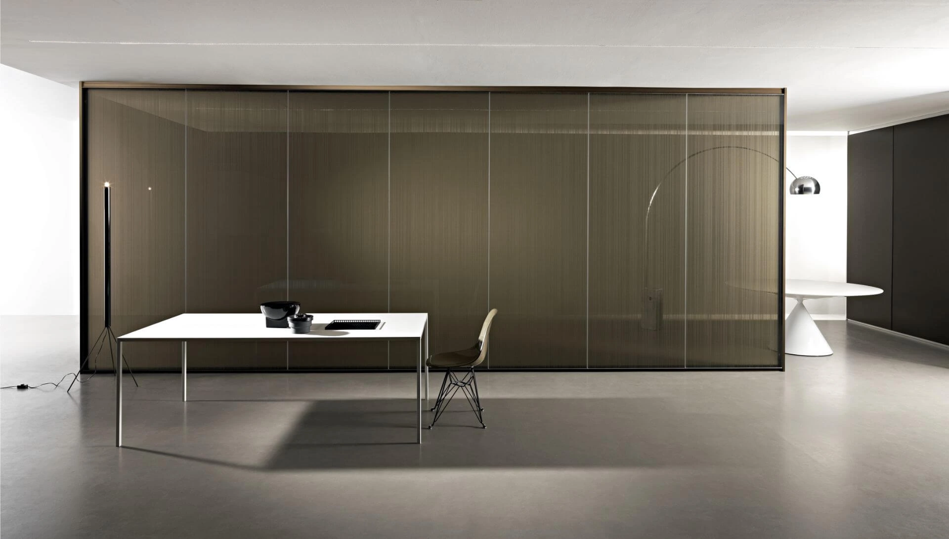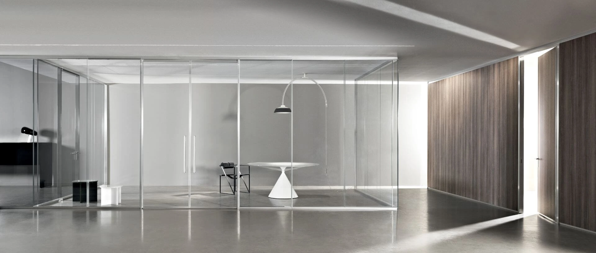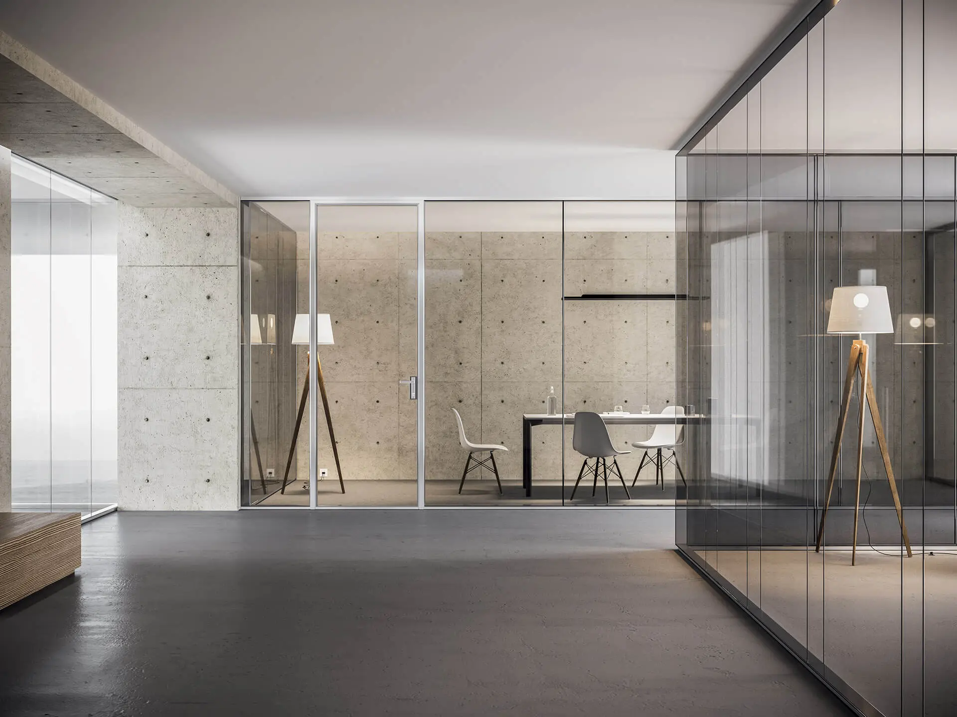 Steklene predelne stene so na voljo v različicah z enojnim steklom, dvojno zasteklitvijo ali enojnim zamaknjenim steklom. Prav tako pa lahko izbirate med različnimi aluminijastimi profili, kot so mat aluminij, črni ter beli aluminij. Poleg klasičnega transparentnega stekla je na izbiro tudi jedkano, neprozorno belo, s prozornim ali bronastim ter neprozornim ali sivim gradientom.
